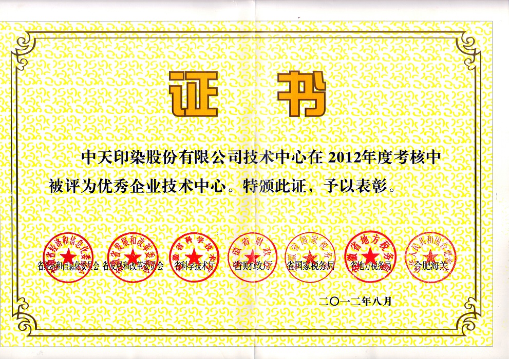 2012年度省優秀企業技術中心