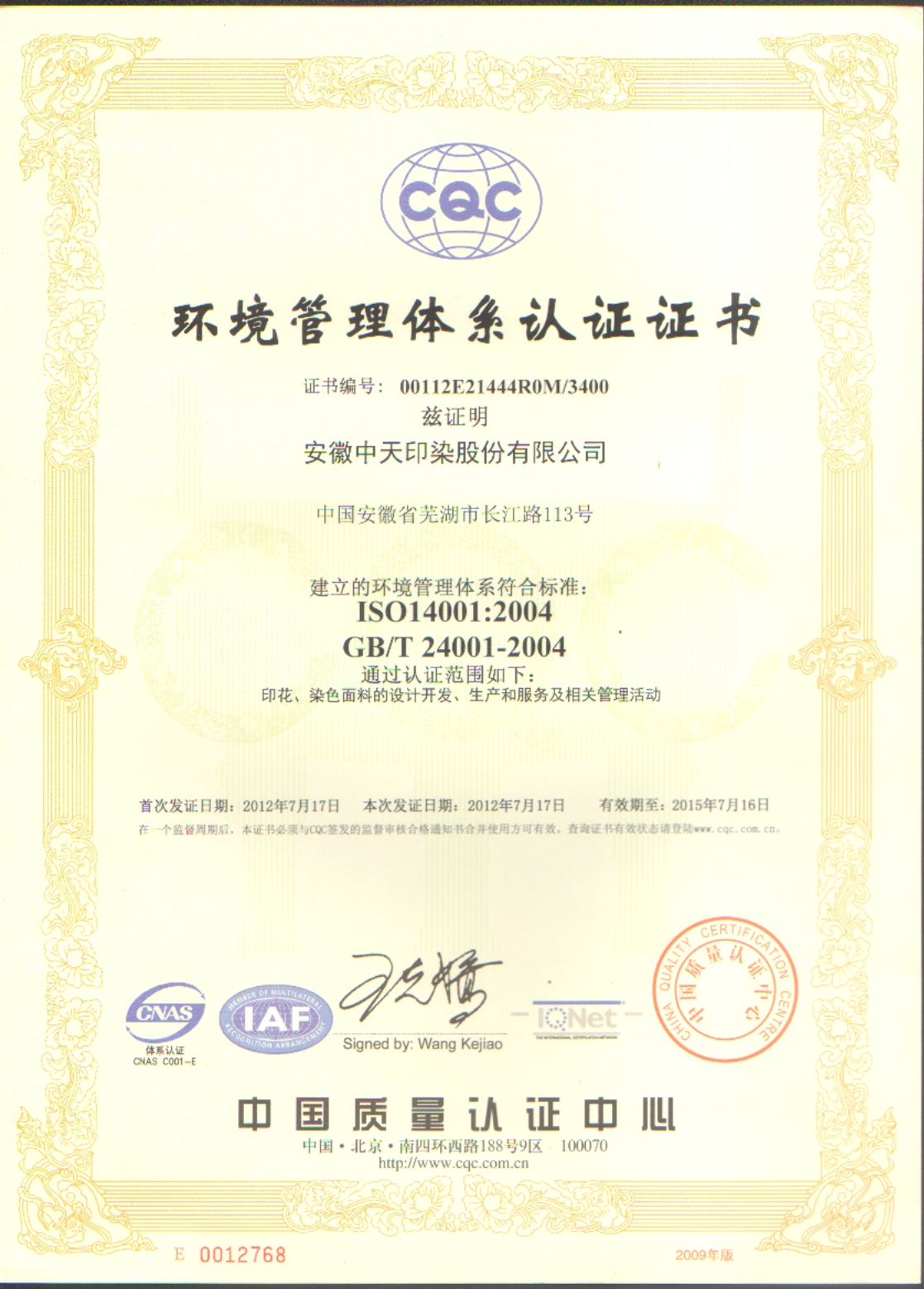 2012年榮獲環(huán)境管理體系認(rèn)證